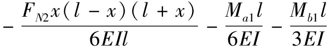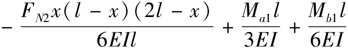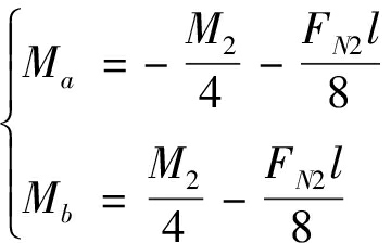 Ma1,Mb1分別為a端和b端的彎矩。聯(lián)立求解式(4)~式(6),得支點(diǎn)處的彎矩大小為: