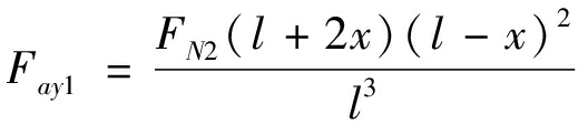 由于撥板的質(zhì)心靠近大端處,故前端導(dǎo)柱所承受的力較大,此處針對(duì)大端處所對(duì)應(yīng)的導(dǎo)柱進(jìn)行力學(xué)分析,如圖7所示。