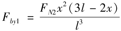 對(duì)整個(gè)導(dǎo)柱上的內(nèi)力進(jìn)行分析,由材料力學(xué)中剪力與彎矩圖,可得大剪力在導(dǎo)柱的左半部分,大彎矩在支點(diǎn)a處,其大值分別為: