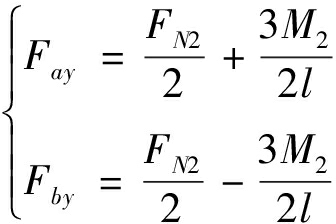 同理,當(dāng)只受如圖7c所示的彎矩時(shí),其a與b支點(diǎn)處力和彎矩的大小分別為